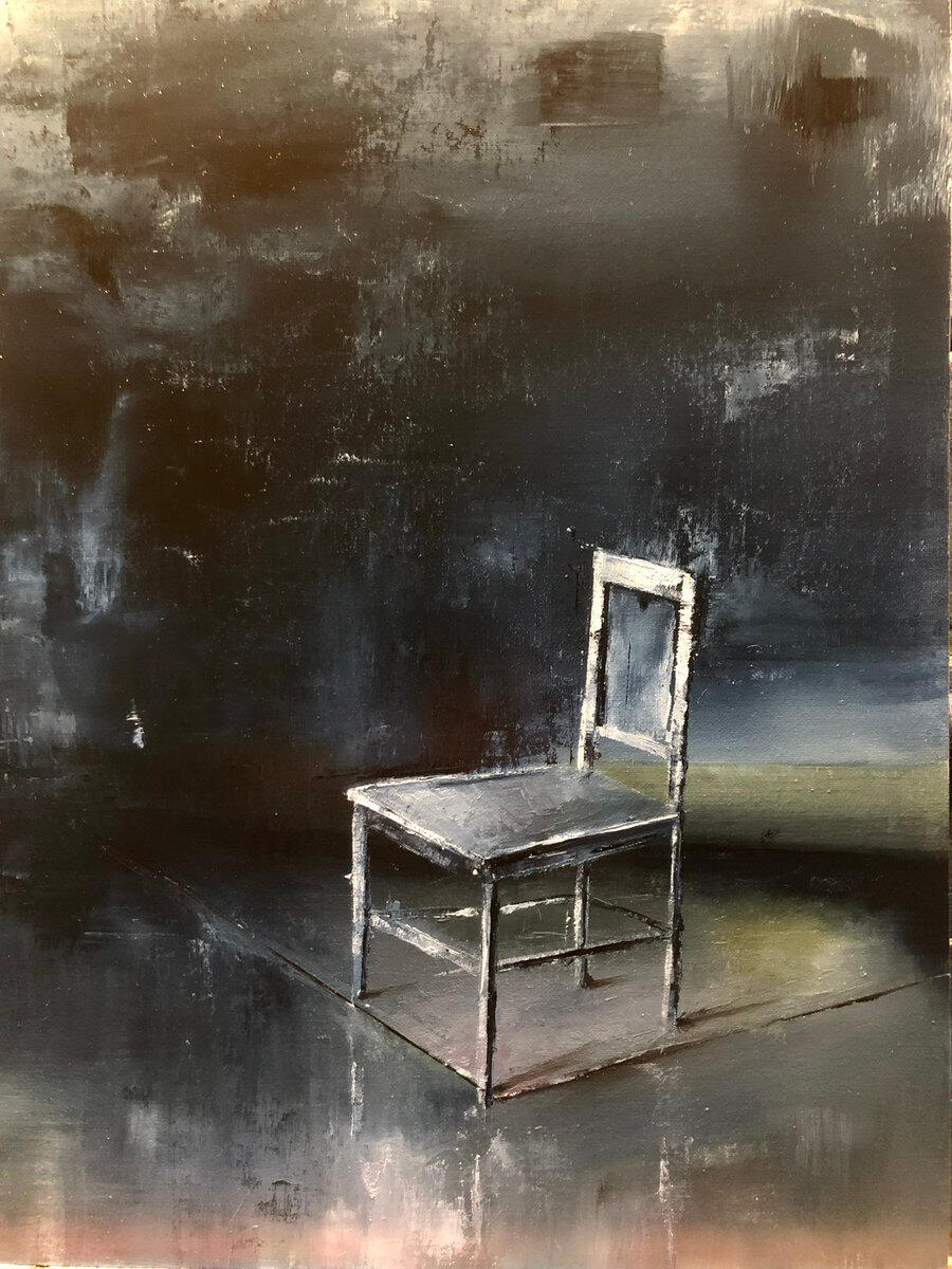 Metafisica di una sedia blu. Olio su pannello telato, 30x40. (180€)