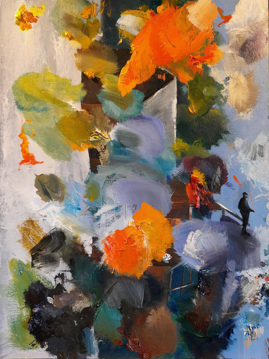Uomo perso nella tavolozza. Olio su cartone telato, 30xx40.